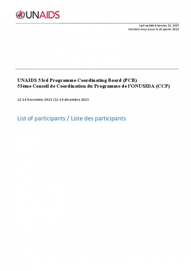53rd meeting, UNAIDS Programme Coordinating Board, 12-14 December 2023