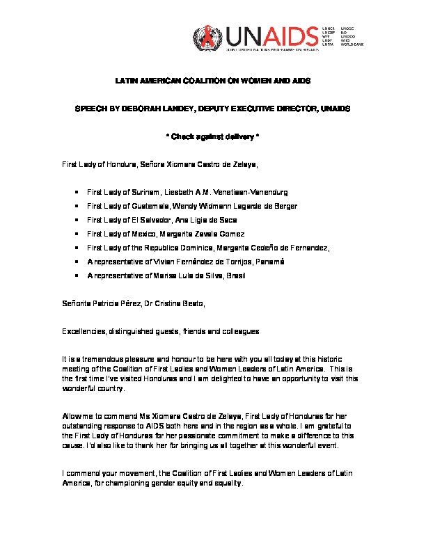 ONUSIDA entristecida por la muerte de Andrea González