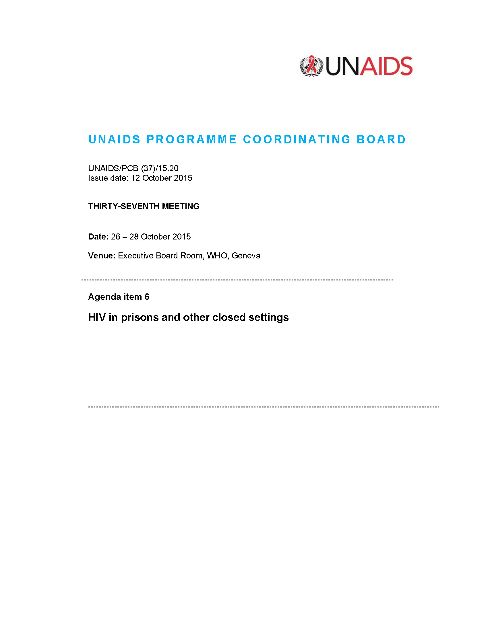 Agenda item 6 HIV in prisons and other closed settings