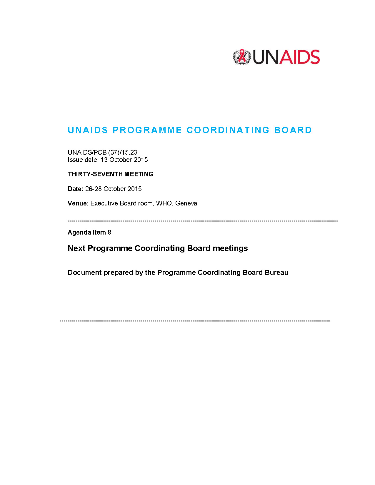 Agenda item 8 Next Programme Coordinating Board meetings