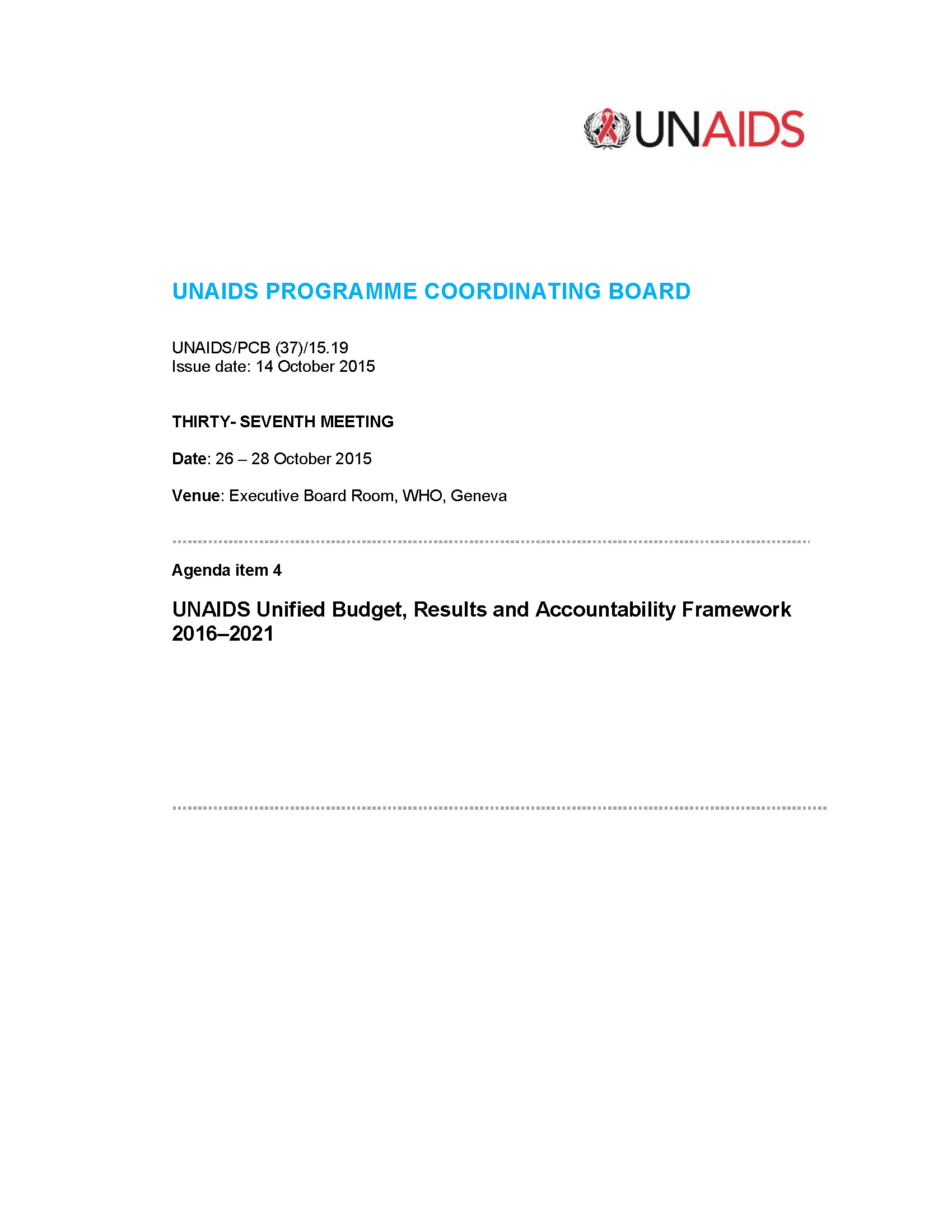 Accueil À propos Conseil de coordination du programme de l’ONUSIDA 37ème réunion du CCP : 26-28 octobre 2015
