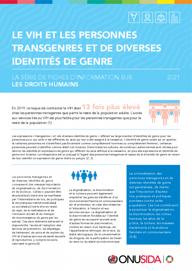 Le VIH et les personnes transgenres et de diverses identités de genre— Série de fiches d’information sur les droits humains