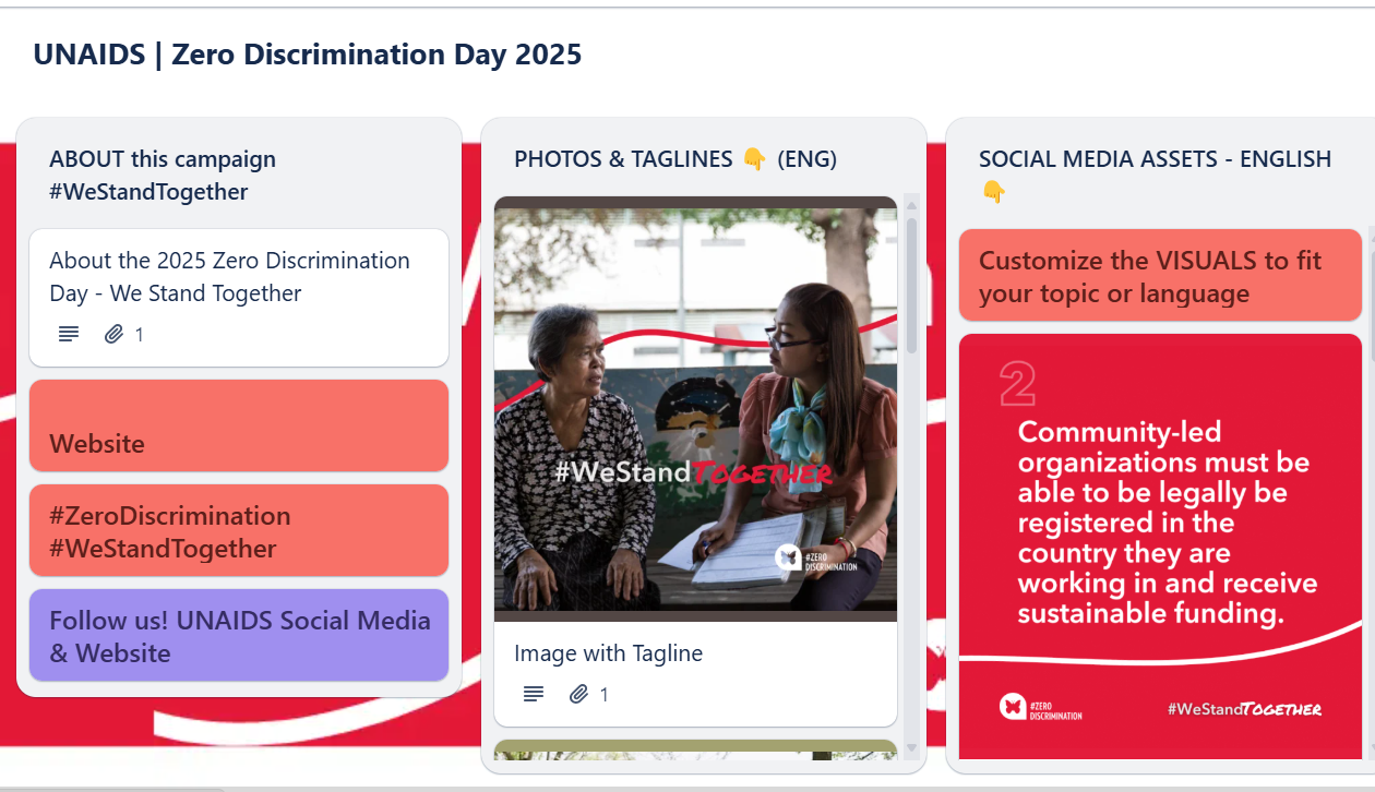 В этом году ЮНЭЙДС выступает в поддержку сообществ. Сообщества играют ключевую роль в обеспечении устойчивости ответа на ВИЧ и в более широких глобальных усилиях в области здравоохранения. Они должны получать финансирование и поддержку, чтобы продолжать свою жизненно важную работу – обеспечивать доступ к услугам для всех людей, живущих с ВИЧ и затронутых эпидемией, а также защищать их достоинство и права.